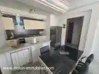 Appartement Sayar AL3603 A louer à l’année un bel appartement situé au 1er étage d’une résidence à Hammamet Nord proche de Résidence Jannet et d’Hotel Nahrawes. Elle est répartie en blocs de type R+2, gardée, sécurisée et bien entretenue. L’appartement offre un lumineux salon ouvert sur un balcon, une salle à manger, une cuisine américaine bien équipée, deux chambres à coucher et une salle de bain. L’appartement est équipé de 3 clims et de chauffage central et il dispose d’une place parking au sous-sol et d'un cellier Les frais de syndic sont de 500 DT/ans Prix : 1 500 DT/mois Pour toutes informations nécessaires et éventuelle visite, vous pouvez nous contacter sur le 00216 50 844 610 / 22 605 844 ou par email à e-mail Agence Mouin Immobilier International Vous trouverez toutes nos offres en visitant notre site web www.mouin-immobilier.com