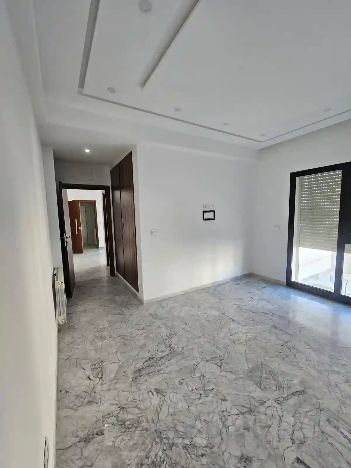 a louer un s plus deux d'une excellente orientation situé dans une résidence bien entretenue équipée de deux ascenseurs et des caméras de surveillance à la nouvelle soukra l'aouina l'appartement est composé d'un salon donnant sur une belle terrasse , d'une cuisine équipée d'une hotte aspirante , d'une plaque à gaz et d'un four électrique et qui donne sur la terrasse , de deux chambres à coucher dont une avec un grand dressing et d'une salle de douche avec cabine en verre. l'appartement est équipé d'un chauffage central agence immobilière hannibal immob